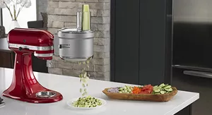 Dice, slice, shred and julienne your favorite fruits, vegetables and hard cheeses. Powered by the KitchenAid Stand Mixer, the Food Processor with Commercial Style Dicing Kit will have you processing in no time. The exclusive ExactSlice System allows you to slice from thick to thin with one slide of the lever. This attachment even works great to quickly and easily make cauliflower rice, a low carb favorite and alternative to traditional rice.